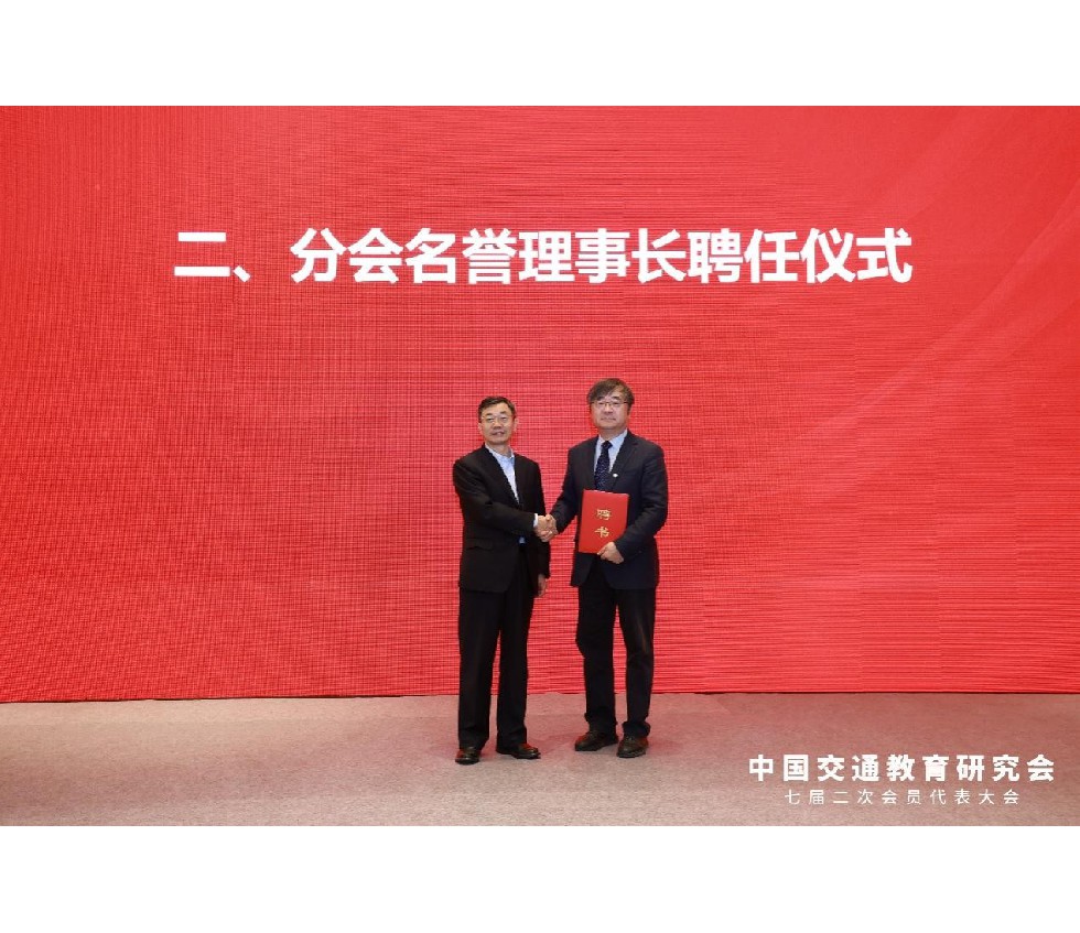 会议第二阶段为第一届理事会第一次会议。大会依照选举办法完成了第一届理事会的选举工作。经全体理事选举,大会产生了名誉理事长、理事长、副理事长、秘书长、副秘书长等领导机构成员。大会选举杨晓光教授为分会名誉理事长,由中国交通教育研究会会长申少君亲自为杨晓光教授颁发聘书。