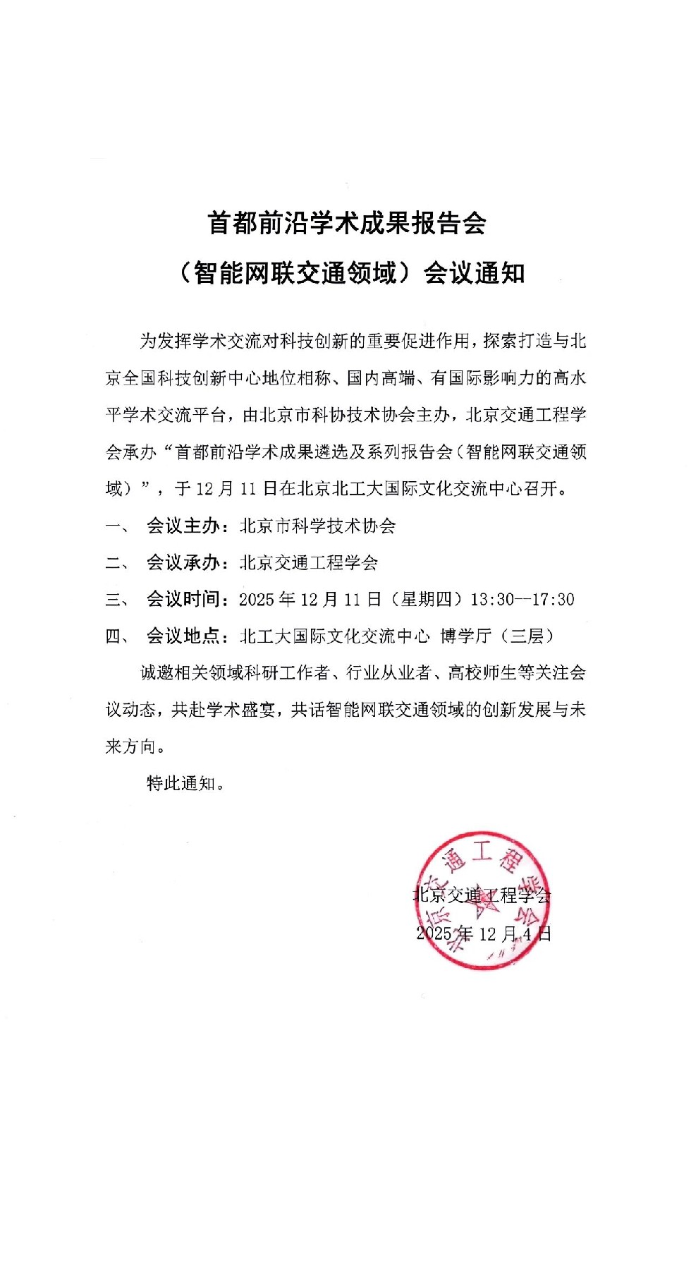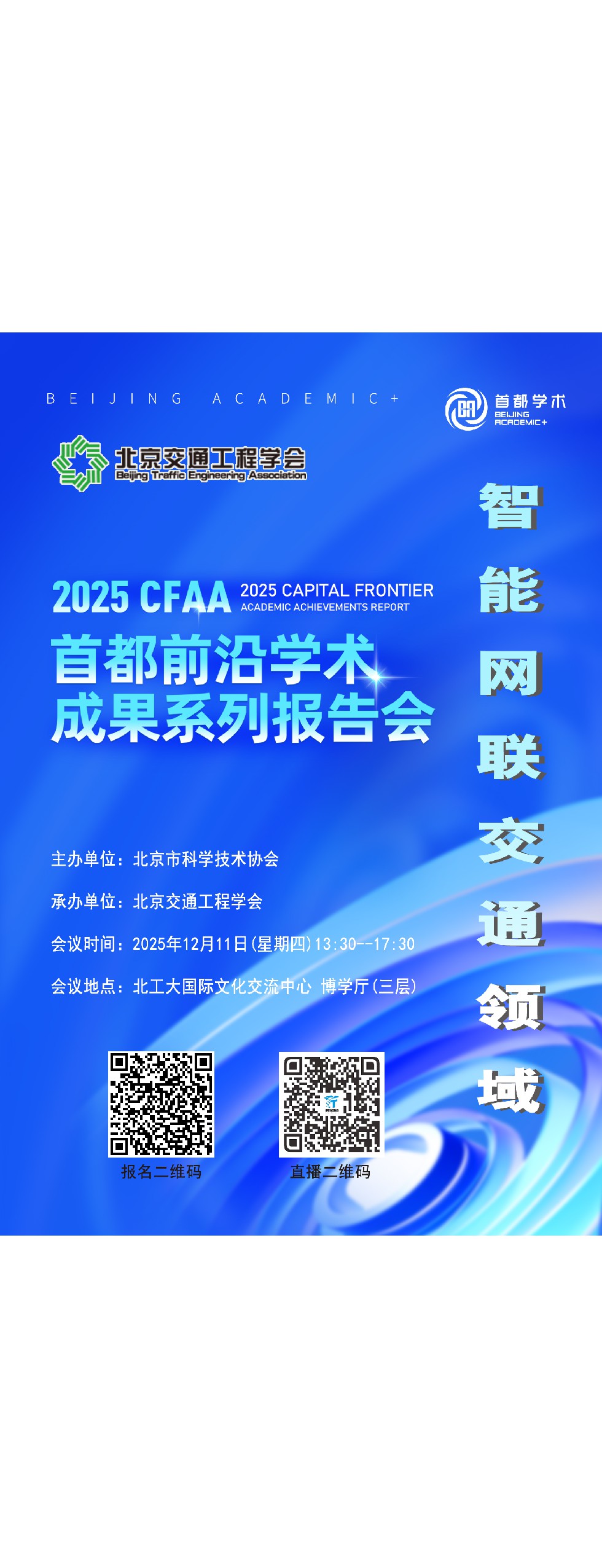 诚邀您共襄学术盛宴 | 首都前沿学术成果报告会——智能网联交通领域